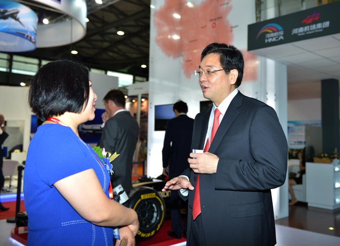Soon after, Ms. Li Jun, the Secretary-general of China Communications and Transportation Association combined transport branch visited the exhibition of HNCA. She said combined transport is the direction of the logistics industry development in the future. Lately, the General Secretary Xi Jinping made positive encouragement on the development of Zhengzhou-Europe International Block Train when he visited Henan Province. Through the exhibition of HNCA, she saw the efforts and new hopes in Henan’s aviation logistics.