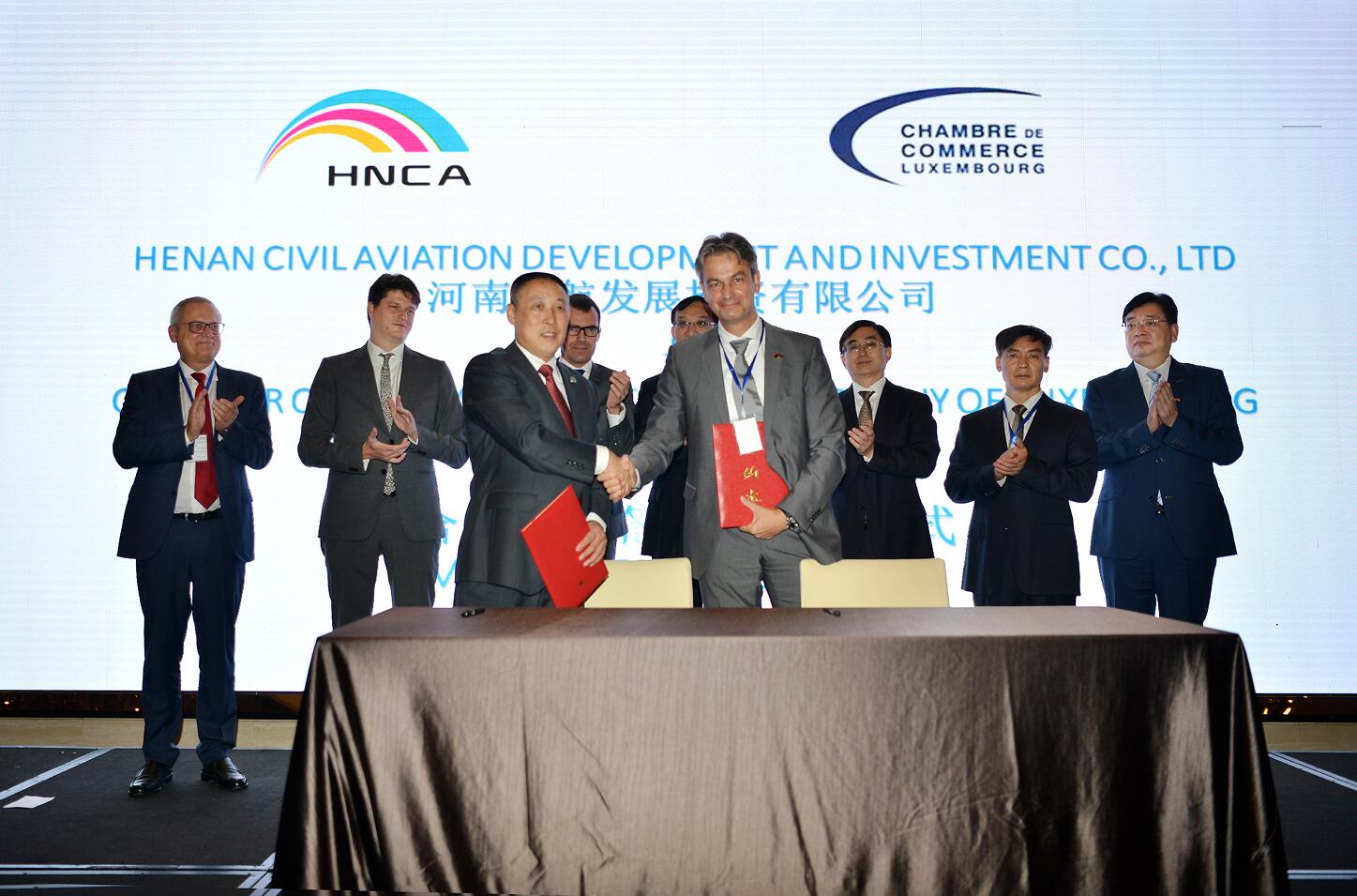 In order to make Zhengzhou-Luxembourg Air Silk Road practical, sustainable and promote its development, HNCA and Chamber of Luxembourg signed MOU on the forum. Both parties agreed to make this forum a regular mechanism that is held in Henan and Luxembourg by turns and hold various promotions such as financial promotion, e-commerce promotion, culture and tourism promotion on the forum as need in the future in order to provide a new planform for China and Luxembourg and other countries along Belt and Road.