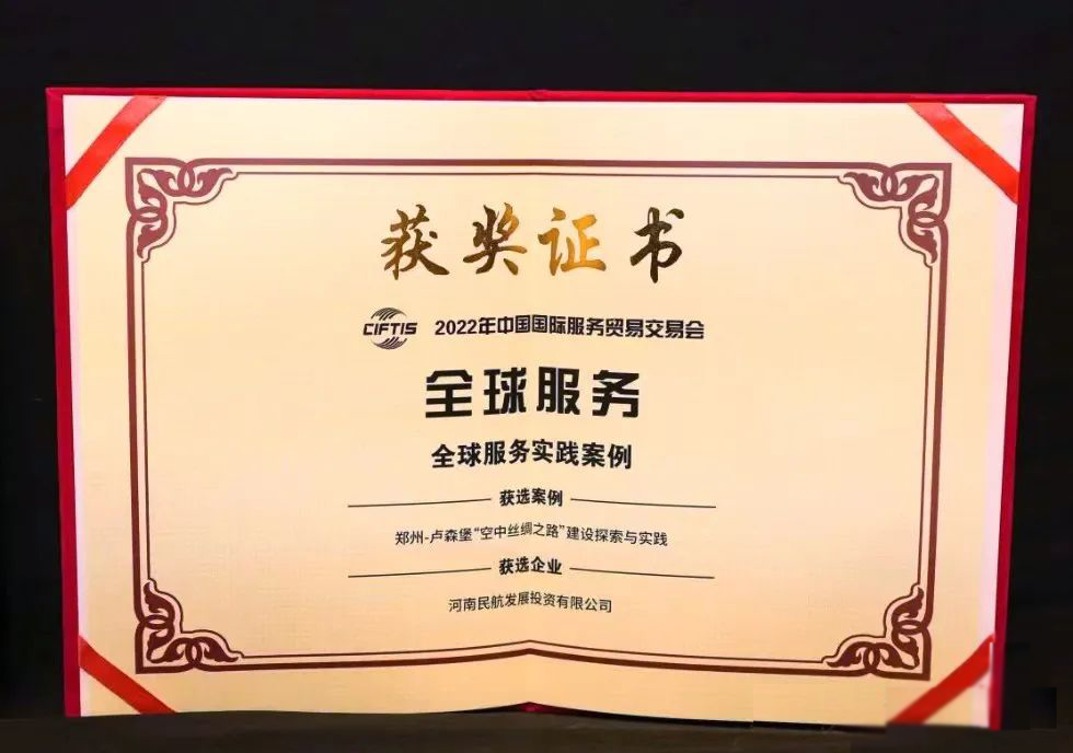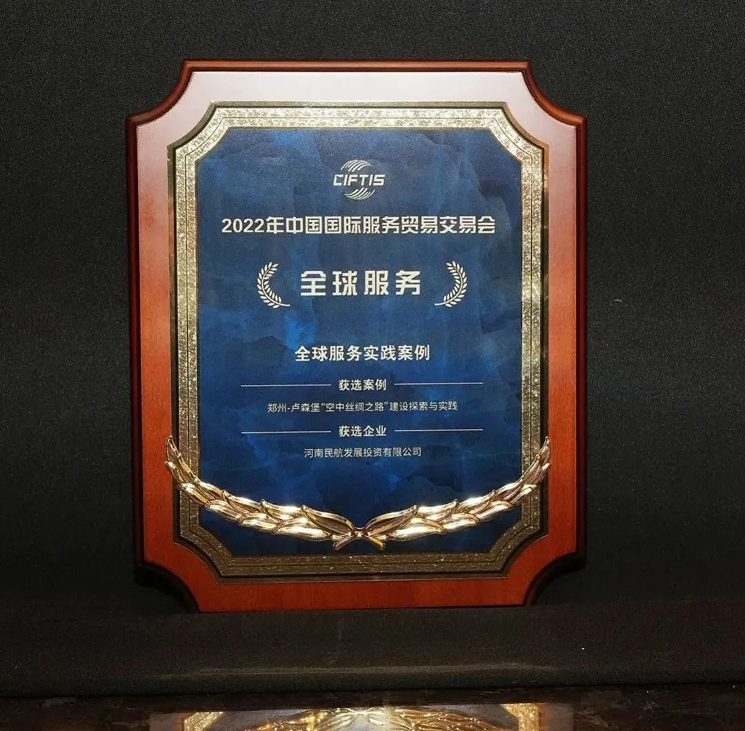 On September 3, 2022, the service demonstration case of China InternationalFair for Trade inServices was released in Beijing. The "Zhengzhou-Luxembourg Air Silk Road, Exploration and Practice" project applied for byHNCAwas awarded "Global Service Practice Case" and was highlighted at the launch ceremony.