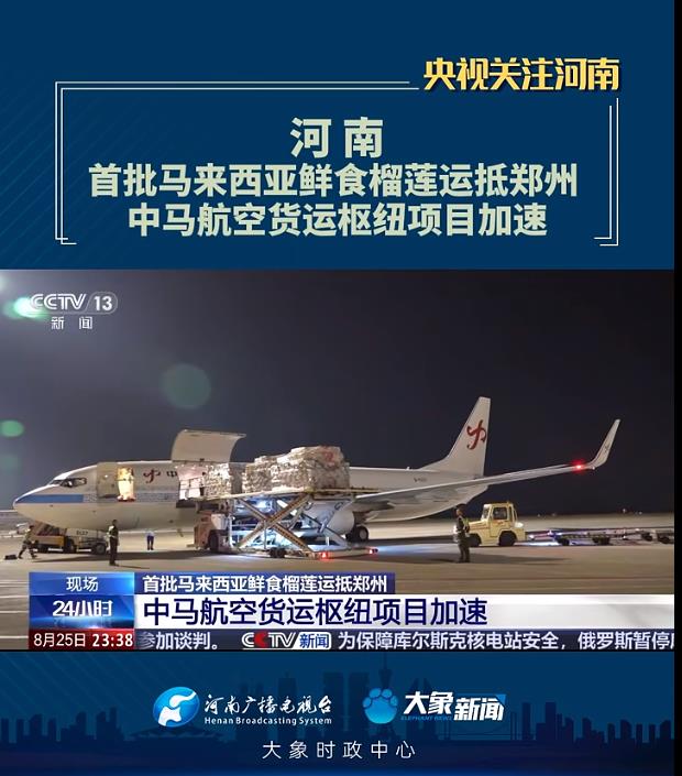 大象新聞客戶端 | 【央視關注河南】首批馬來西亞鮮食榴蓮運抵鄭州